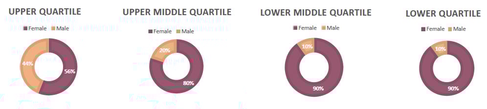 The Upper Middle Quartile has seen an increase in females by 6%.