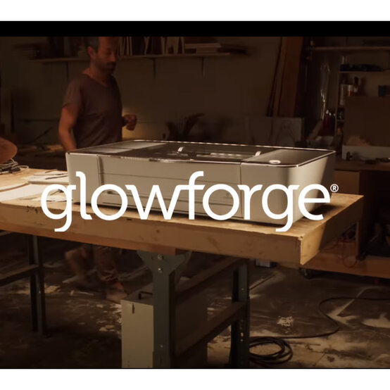 - Includes Glowforge machine, Glowforge laser head with macro camera and autofocus, power cord, magnetic lens replacement tool, steel crumb tray, exhaust hose, ring clamps for hose connections